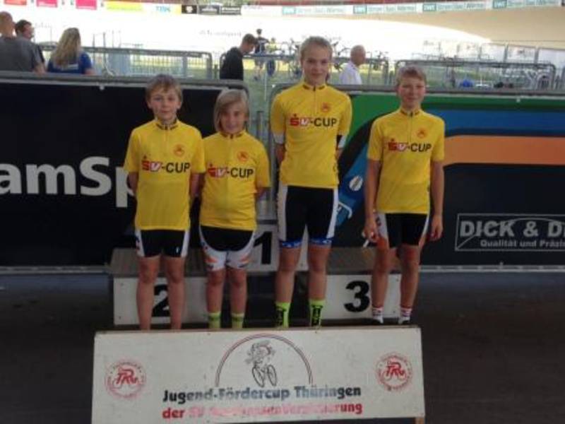 Am vergangenen Samstag fand auf der Radrennbahn im Andreasrieth der Bahnabschluss und somit auch der letzte Wettkampf des Jugendfördercups der Sparkassen Versicherung der Altersklassen U11 bis U15 statt. Thorge Gödicke (SV Jena Zwätzen) und Lara Wolf (SSV Gera 1990) konnten sich jeweils in der U11 den Gesamtsieg sichern. In der U13 gewann Lucas Küfner (SSV Gera 1990) bei den Jungs und Lara Sophie Jäger (RSC Turbine Erfurt) bei den Mädchen. Domenik Wolf und Lena Fabienne Franke (beide SSV Gera 1990) konnten ihre Führung, trotz Abwesenheit vom letzten Wettkampf, in der Altersklasse U15 verteidigen und somit die Gesamtwertung gewinnen.